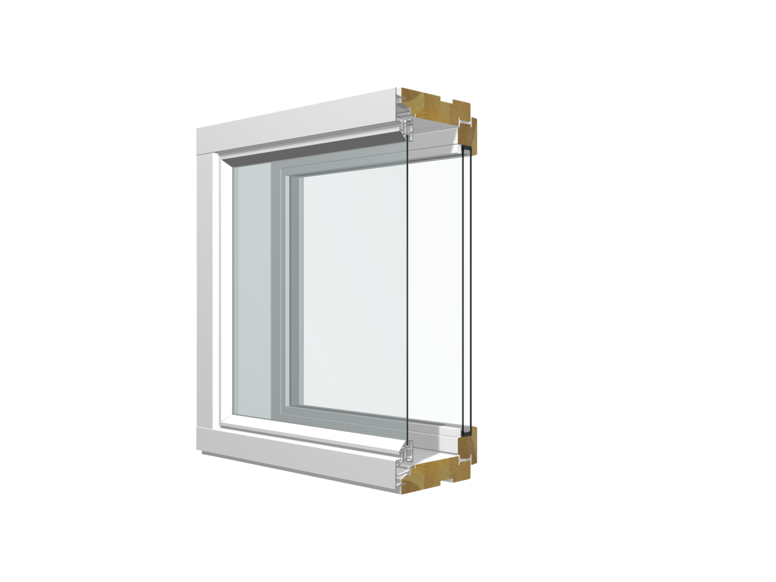 Kolmilasinen sisäänaukeava puualumiini-ikkuna.