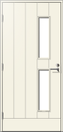 | Lisävarusteet | • Painikkeet ja avainpesät, myös sarjoitettuna• Turvalukitus• Koneistus ja putkitus sähkölukitukselle• Ovisilmä, ovikello, postiluukku• Ylä- ja sivuikkunat• Potkupelli rosteri tai alumiini• Oven tyyliin sopiva kiinteä tai avattava levike |