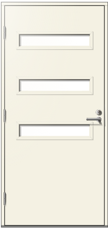 Välj mellan olika trycken, låskistor (ASSA, Abloy), förberedelse för ellås, låscylinder (Abloy, Abus), olika glasalternativ, dörröga, dörrklocka, brevinkast, sido- och överljus, sparkplåt i rostfritt stål eller aluminium.