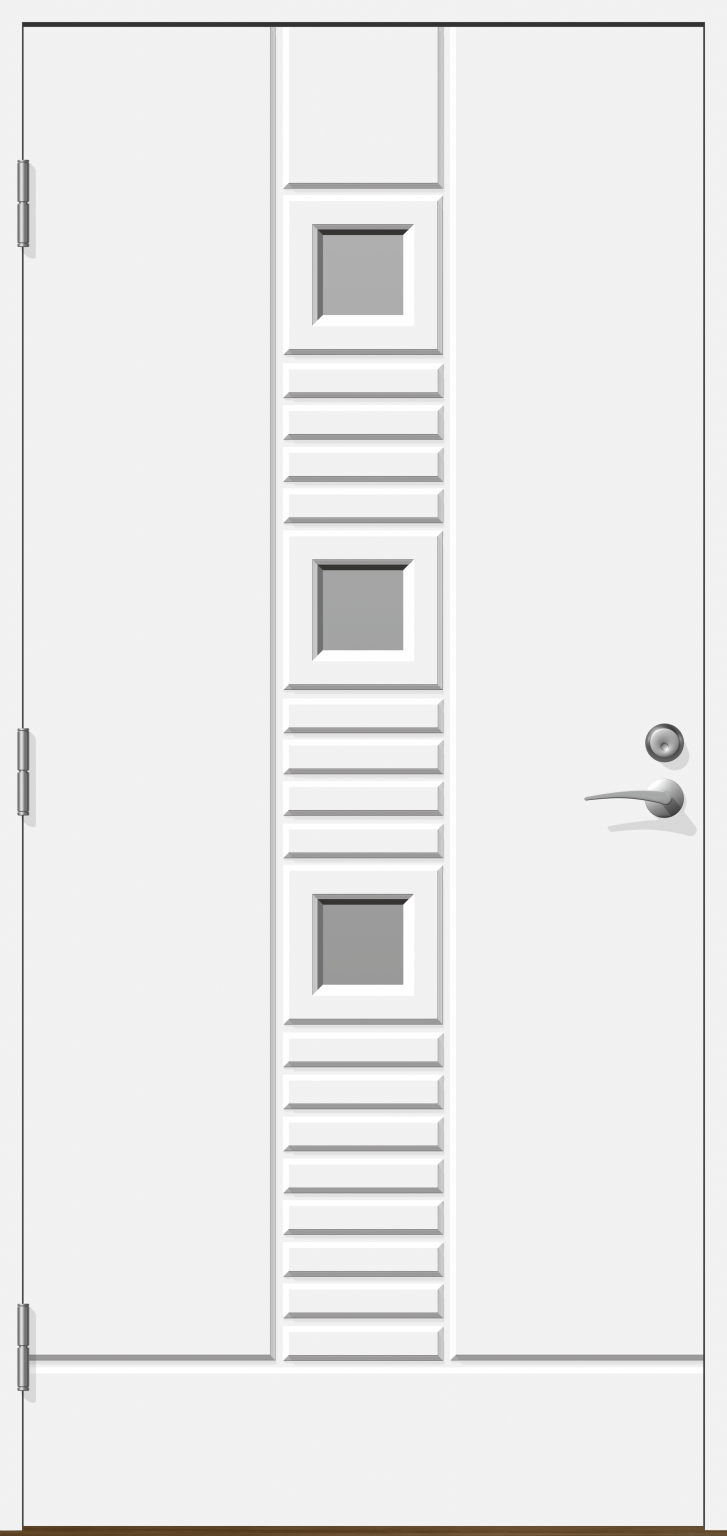Handtag och nyckelhål, även seriekopplade Säkerhetslås Förberedelse och rördragning för elektrisk låsning Dörröga, ringklocka, brevinkast Över- och sidofönster Sparkplåt i rostfritt stål eller aluminium Fast eller öppningsbar sidodel som passar dörrens stil