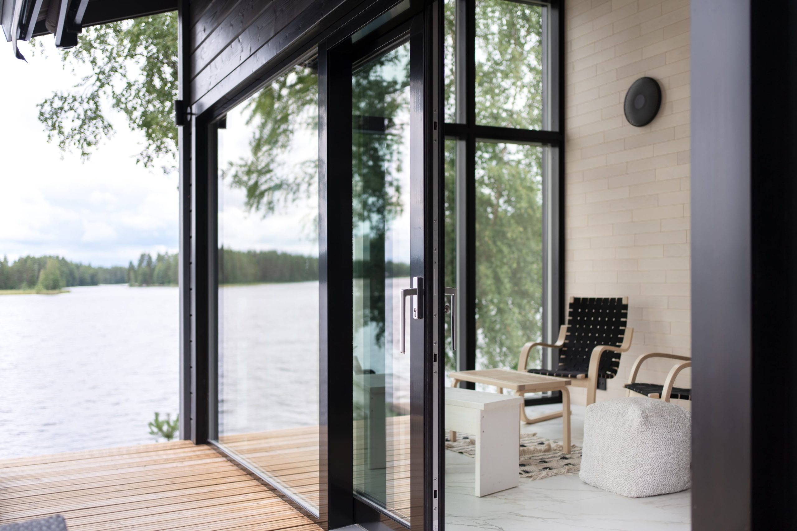 Komplettera med fasta fönster: Maximera glasytan genom att kombinera våra skjutdörrar med våra smäckra fasta fönster. Tillsammans skapar de en estetiskt tilltalande vy med oöverträffad ljusgenomströmning.